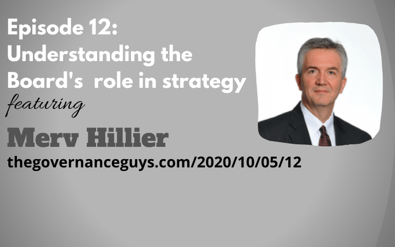 A key document for many Boards is the Strategic Plan for their organization. But what is strategy and how should the Board engage in setting strategy and overseeing its implementation? Merv Hillier is the founder of consulting firm Nuvision. He is an educator, CEO, and Board member and he sat down with us to talk strategy. If you are wondering how involved the Board should be in both the planning and execution stages of strategy then this is the episode for you!